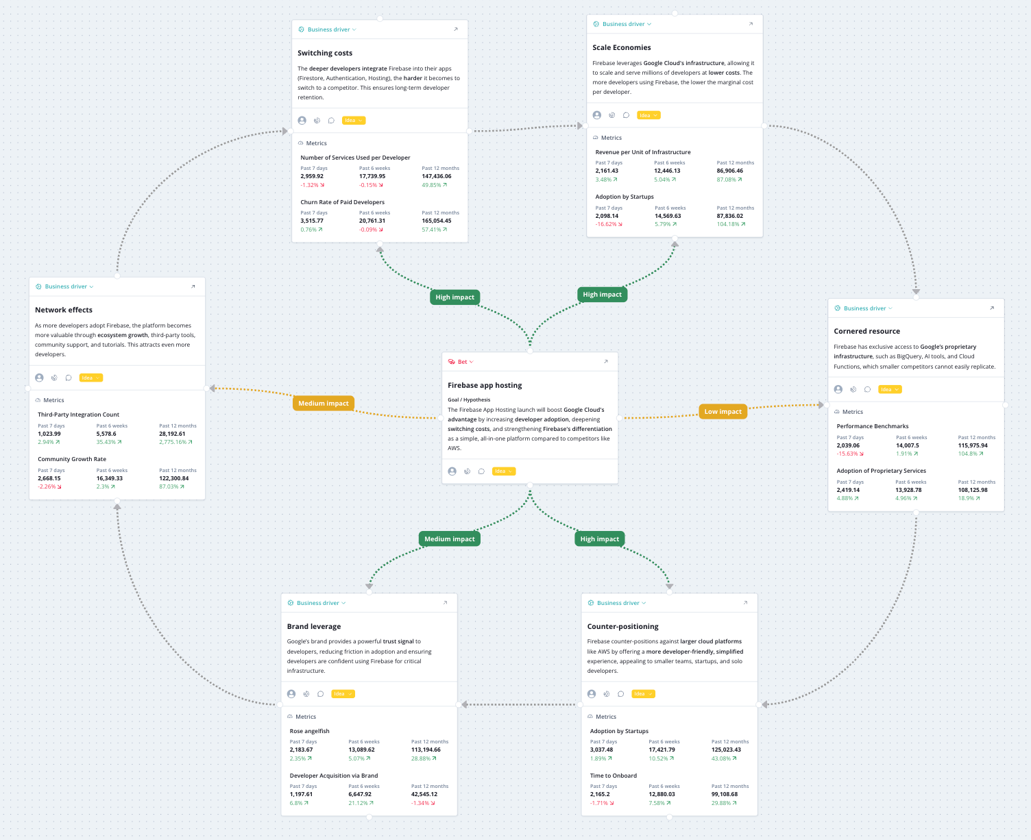 - Customer Value Creation: From a customer perspective, app hosting directly impacts developer productivity and cost efficiency. By reducing the need for developers to manage their hosting infrastructure, Firebase enables faster deployments, fewer errors, and reduced costs per app deployment. Developers can focus more on building their applications, leading to faster time-to-market and improved app performance. As developers experience these benefits, their usage of Firebase deepens, leading to higher satisfaction and continued engagement with the platform.