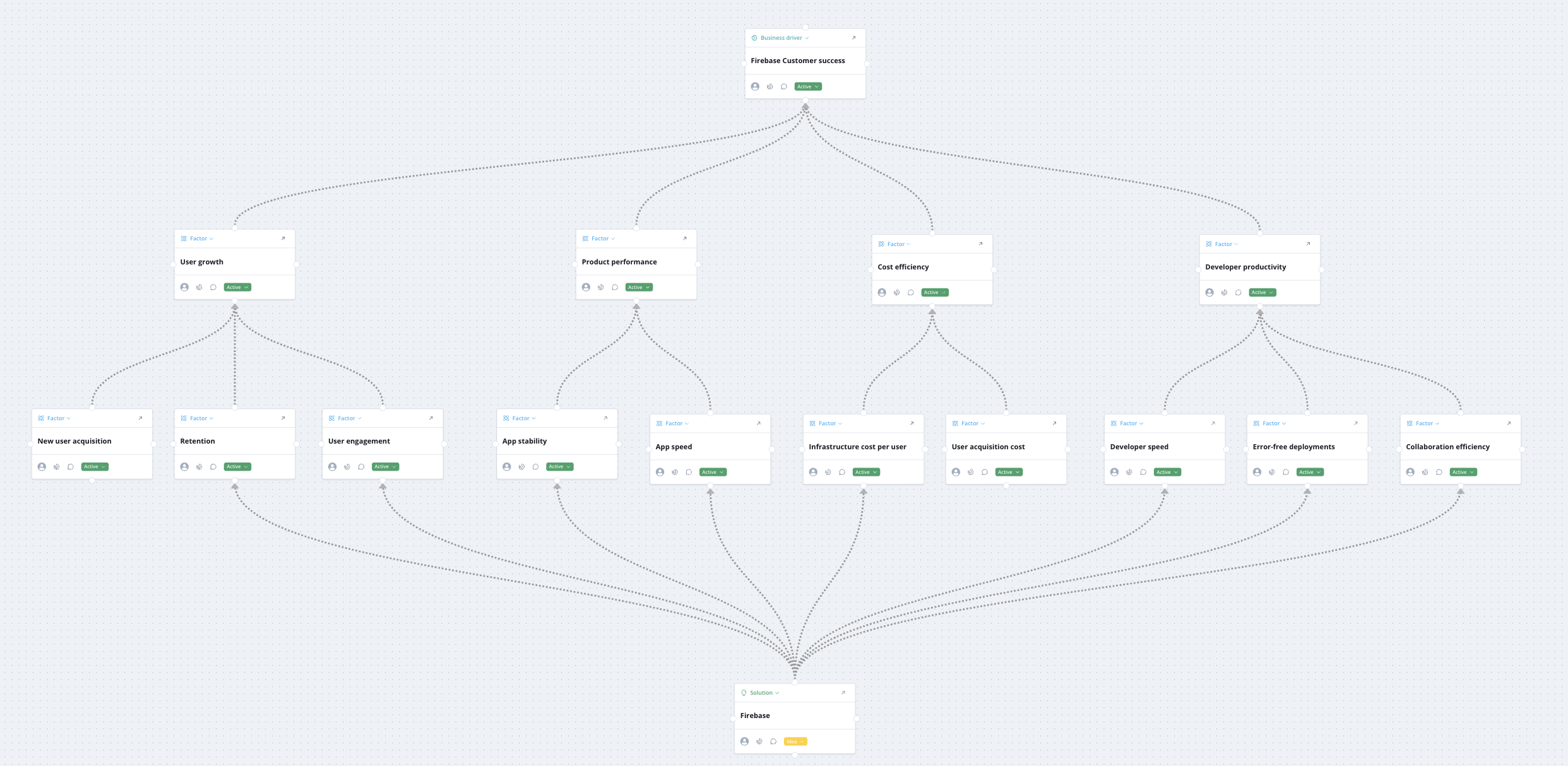Here's the outside-in value capture model I generated for Firebase in the form of a KPI tree: