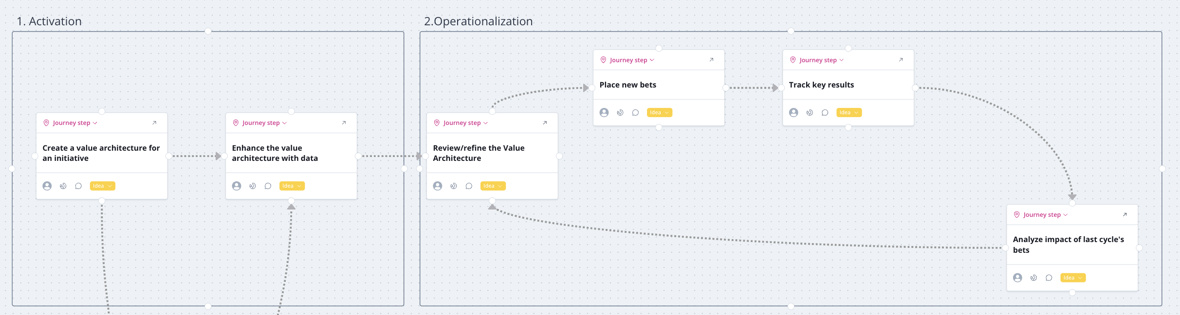 When a value architecture is populated with data, teams uncover flawed assumptions and identify the highest-leverage input metrics to focus on. As you feed more data and insights into the value architecture, it gets smarter. The result is that your teams stay focused on projects that move the business forward and kill less impactful tracks of work.